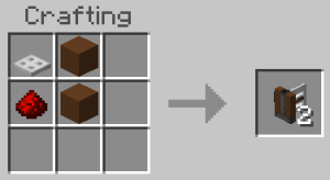 |[https://minecraft.wiki/w/Iron_Trapdoor Iron Trapdoor], [https://minecraft.wiki/w/Concrete Concrete] or [https://minecraft.wiki/w/Terracotta Terracotta], [https://minecraft.wiki/w/Redstone_Dust Redstone Dust] | |||